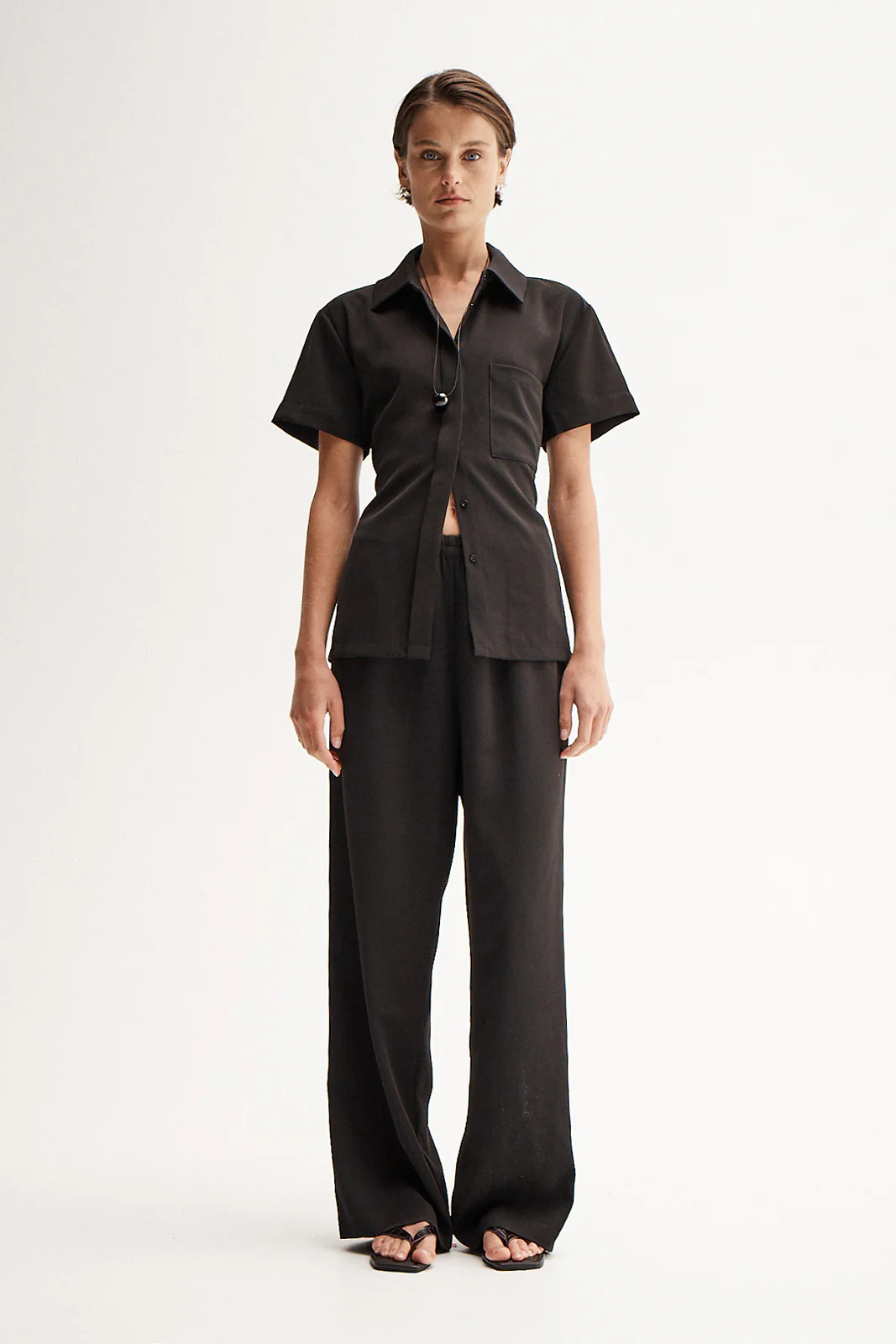 Relaxed, refined outfitting for refreshing your autumn wardrobe, the Edra Shirt is our new season hero. This shirt is made of a soft, lightweight fabric that drapes over the body and has a smooth, silky texture that feels luxurious. The Edra Shirt is cut to a boxy, slightly oversized silhouette with short sleeves, a collared neckline, and button through front. An added corset tie at the back of the shirt allows you to adjust the fit to your preference; opt for a loose and relaxed fit for casual outings, or a slim fit for a sleek office look. Finished with a front pocket detail, the Edra Shirt is a versatile piece to carry you through the season. Match with the Edra Pant or style with crisp blue denim.