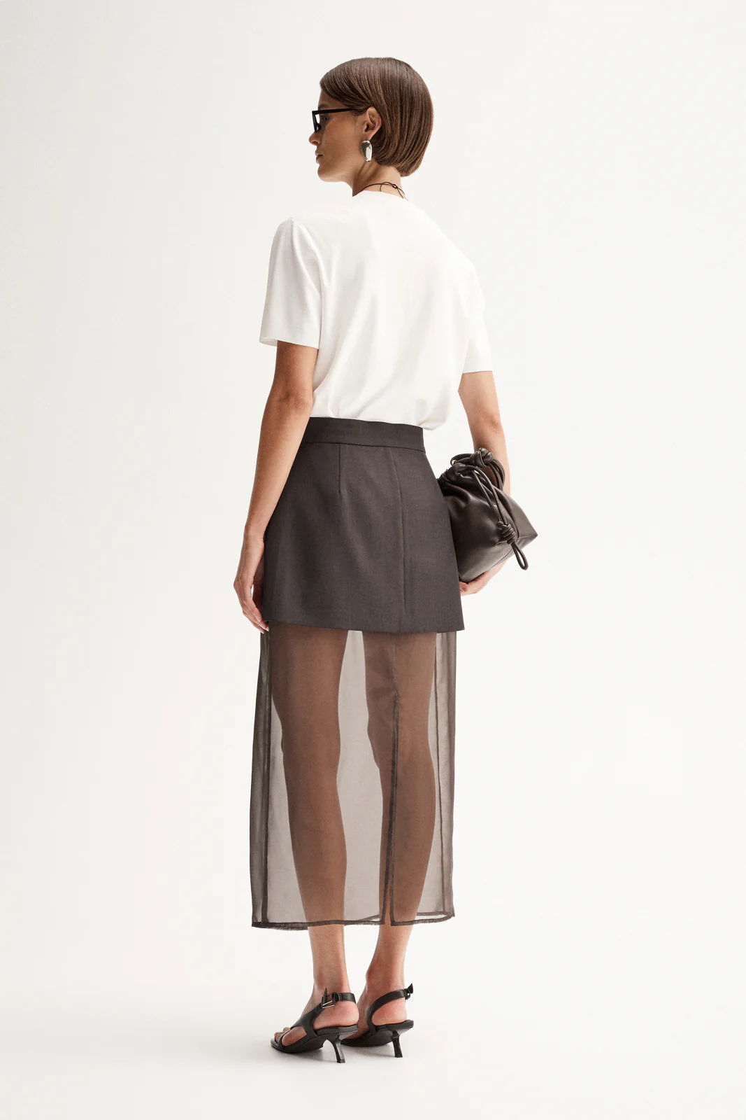 Playing with texture and layers, the Pharoah Skirt is a unique style made of luxe recycled fabric and soft, flowy chiffon. Designed for versatility, this style has a tailored top skirt cut to a mini length with a classic a-line silhouette, faux pockets, and a zip fly with hook and bar closure to reflect our refined tailoring. The semi-sheer underskirt is cut to a midi length with rear hem split and is fully detachable from the topskirt. Styled with the matching Pharoah Blazer and transeasonal knitwear, this skirt effortlessly carries your wardrobe from day to night and through every season.
